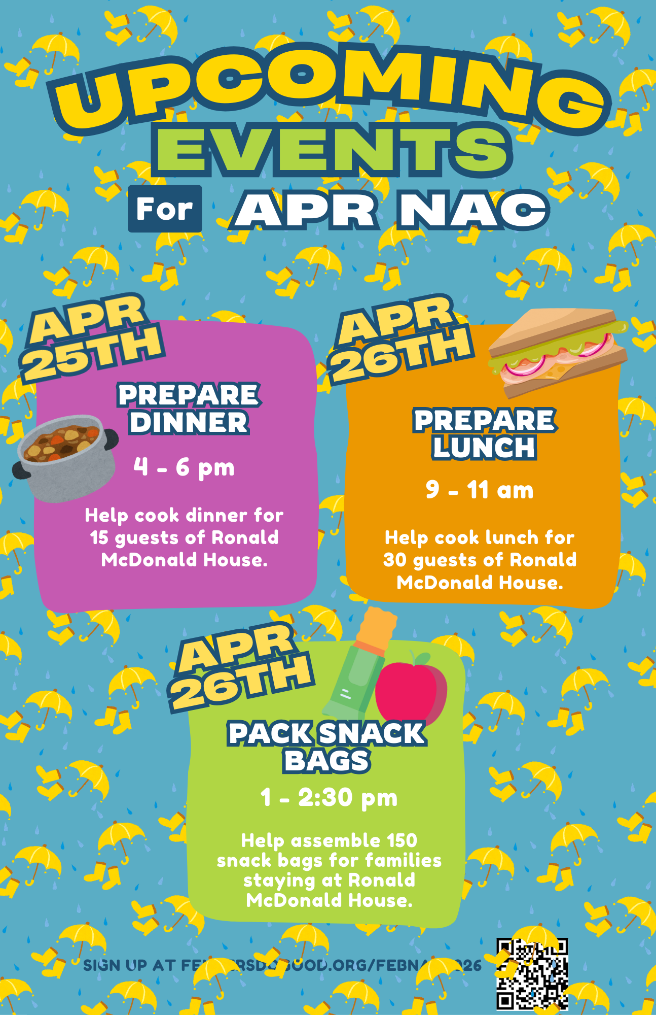 Volunteers will help assemble and pack 150 snack bags. We will provide all the components of the snack bags.